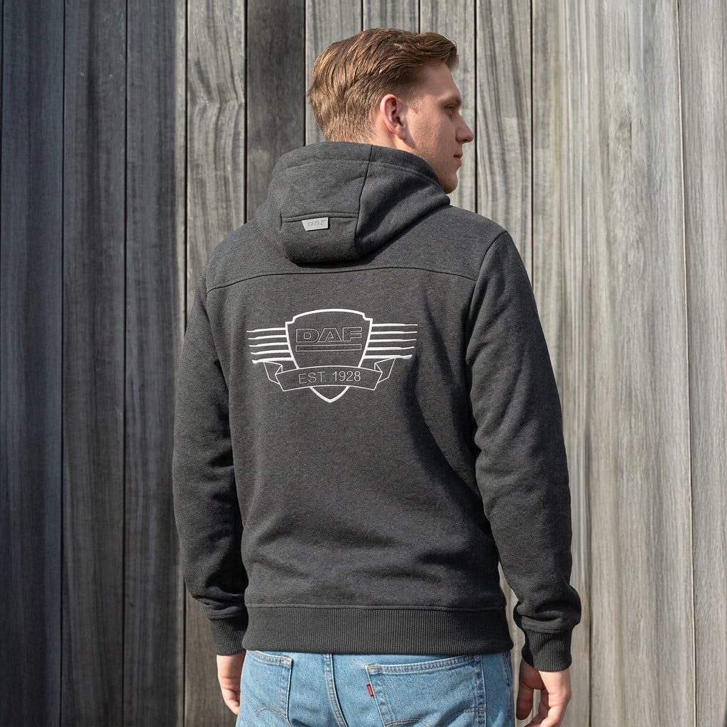 Marquage DAF : Logo DAF à l’avant, dos avec imprimé de calandre DAF et EST. 1928